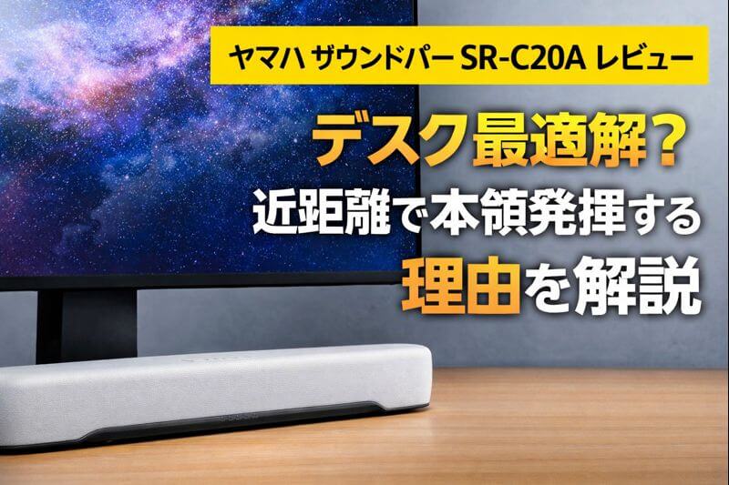 今回レビューするSR-C20Aは、サイズを抑えつつ音の聞きやすさを重視したモデル。特にデスク環境や小さめのテレビと組み合わせる用途で評価の高い製品です。