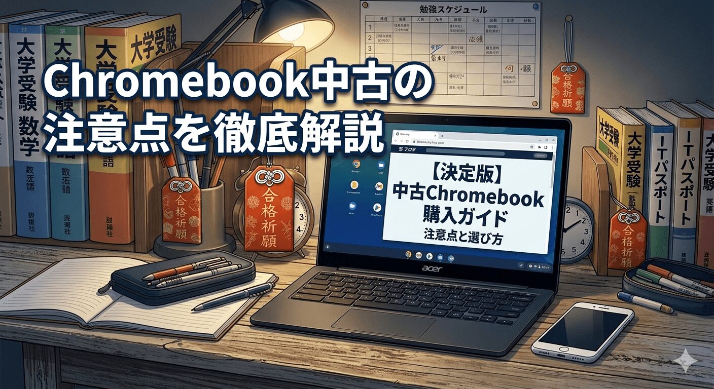 この記事では、中古Chromebookを検討している人が安心して購入できるように、基本知識からチェックポイントまで順番に解説していきます。